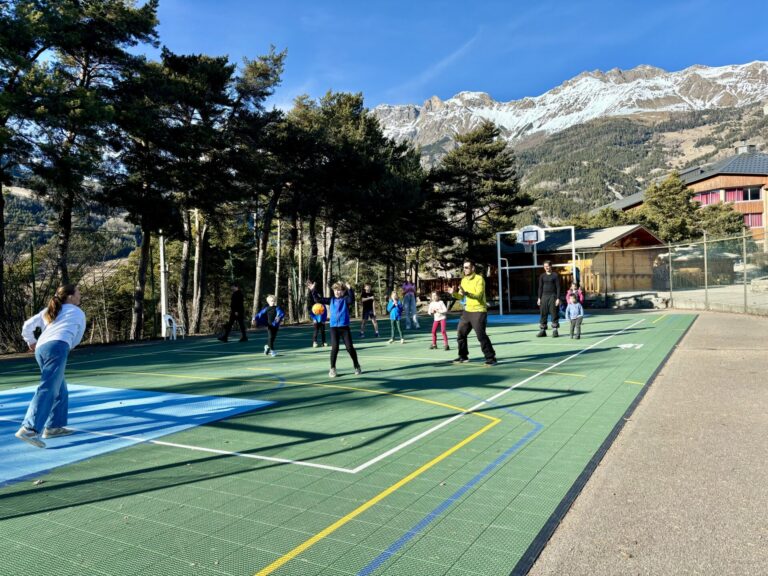 Un terrain multisports, pour pratiquer en équipe du foot, du handball, du basketball ;